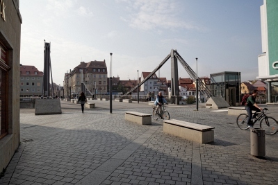 Am Kranen einen Rundblick machen auf Altes Rathaus, Kloster St. Michael, Mitoraj©-Figur usw. usw....