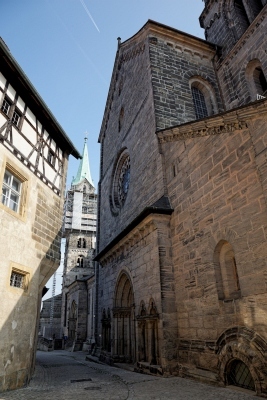 Die Kirche St. Jakob ignorieren wir erst einmal und biegen statt dessen rechts in die Michelsberger Straße ab. Es geht durch